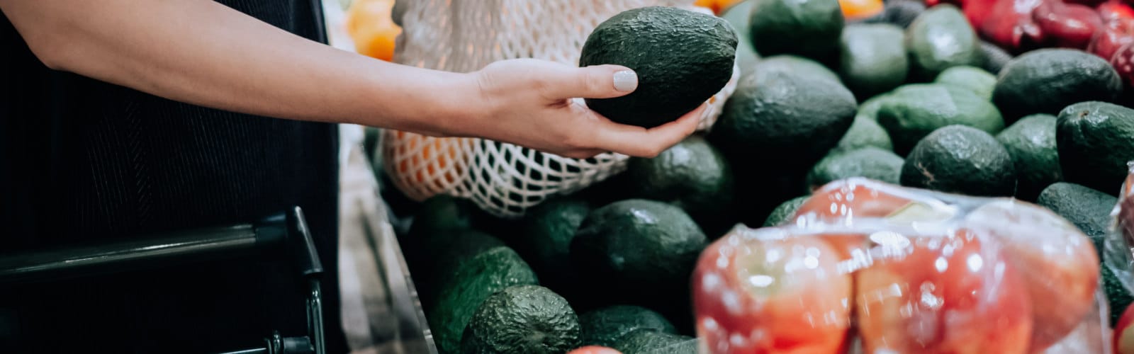Hand greift nach Avocodo im Supermarkt